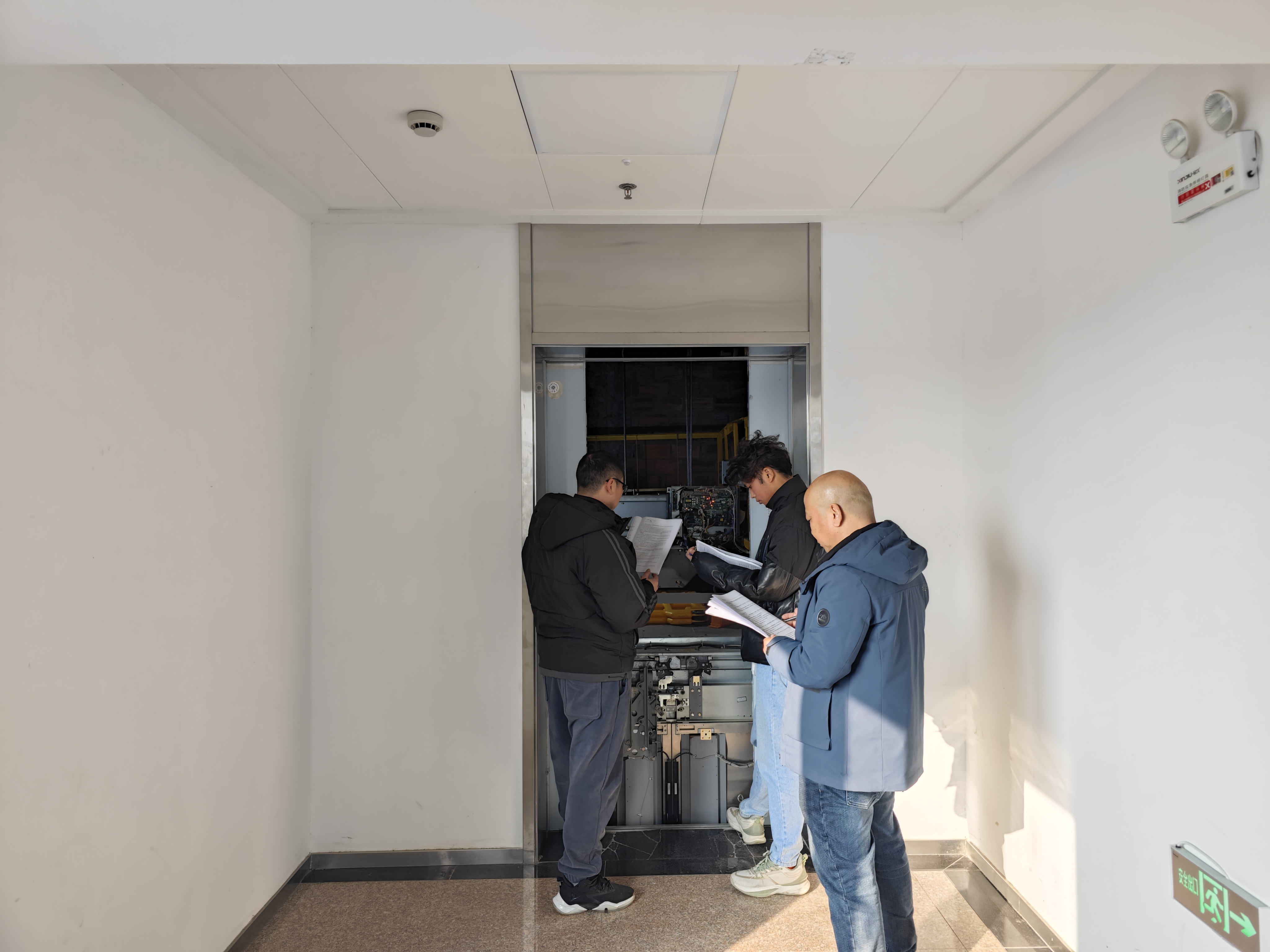 本次培訓共分為三個階段,由電梯與特種業務檢測中心電梯檢驗師楊樂和行業內權威專家進行現場授課。培訓主要內容有:電梯基本原理和安全部件介紹,特種設備法律法規宣貫,《電梯自行檢測規則》(TSG T7008—2023)、《電梯監督檢驗和定期檢驗規則》(TSG T7001—2023)標準宣貫,安徽省及各地市地方規定解讀,電梯檢驗檢測常見問題解析并使用科研樓一部有機房電梯進行模擬實操培訓。