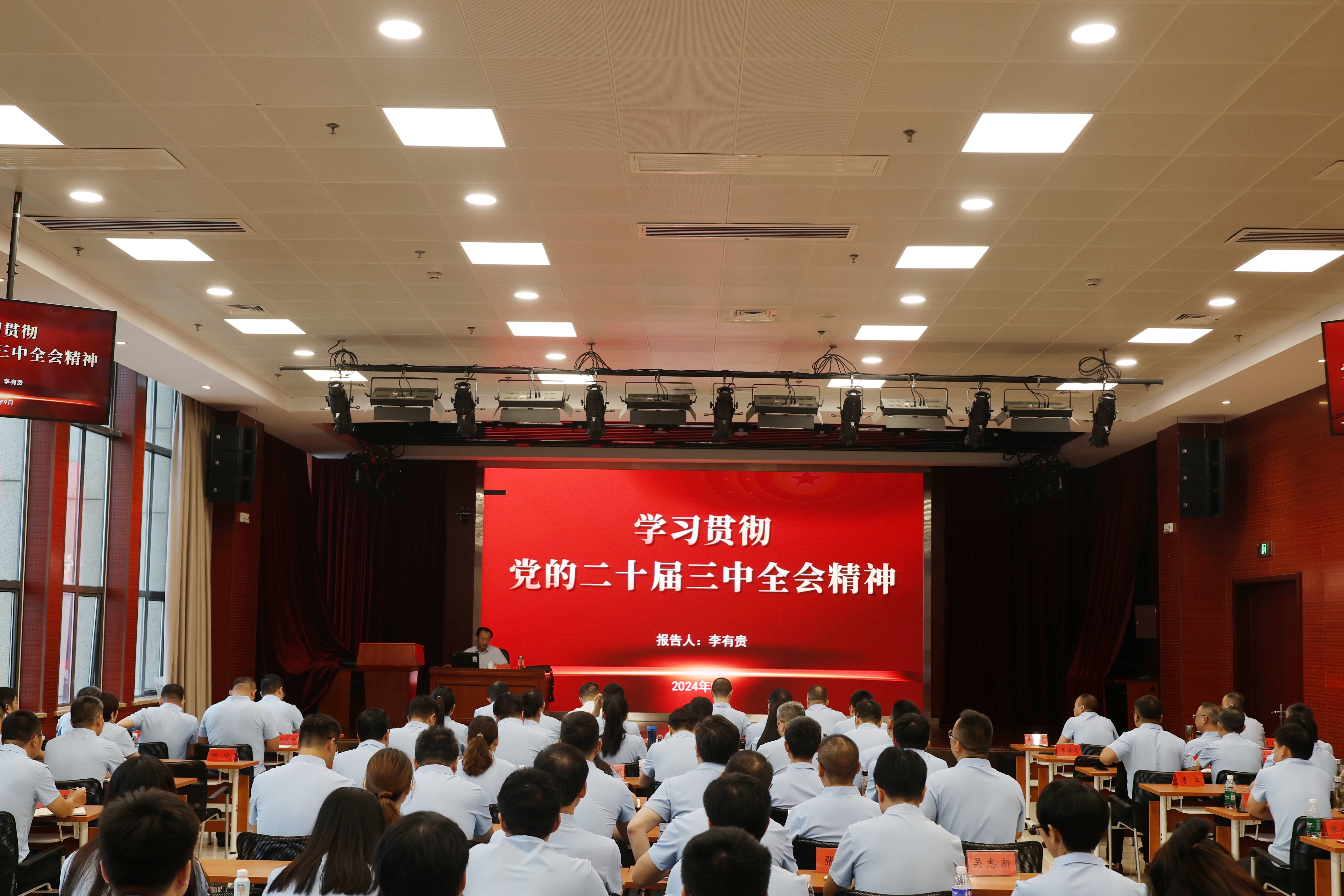 宣講中,李有貴以《學習貫徹黨的二十屆三中全會精神》為題,緊密結合集團上下改革發展實際,圍繞全會的基本情況、習近平在全會上的重要講話精神、全會提出的重大舉措、抓好全會精神貫徹落實等方面,結合企業發展實際和個人理解感悟,對黨的二十屆三中全會精神在建工檢測落實落地作了全面宣講和系統解讀。
